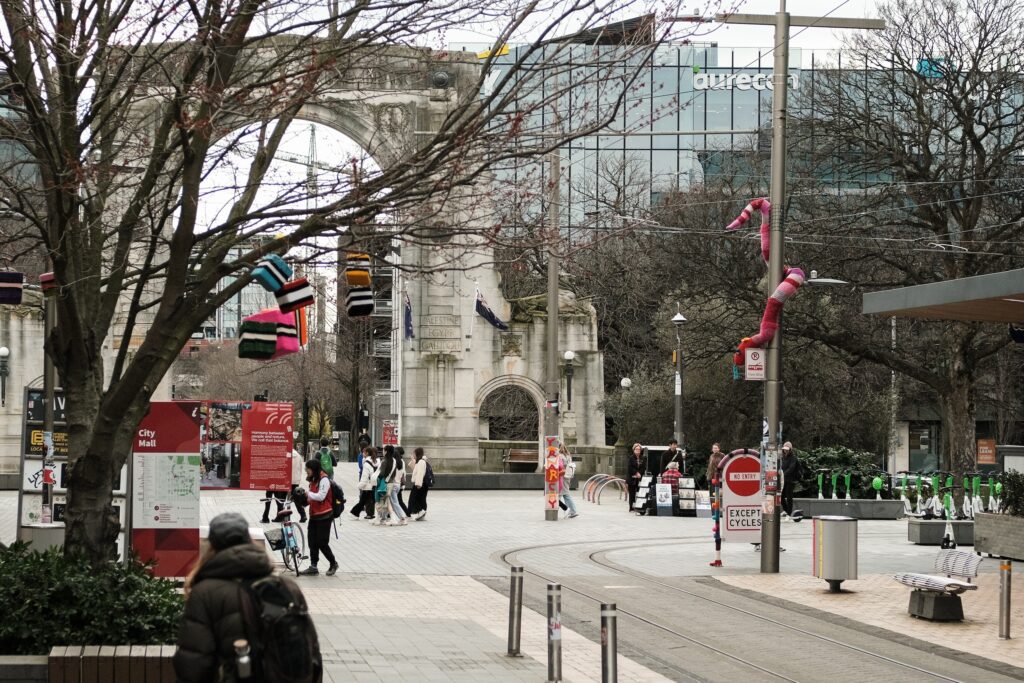 Kate Finnerty: We’re going to take the works down on the 21st of September, so it’s up for three weeks this time. We’ve extended it out a week just so people get to see it, but we also don’t want to leave it up too long because then it feels like a bit of an invitation for people to disrupt it. Most of the works are along Cashel Street and then Oxford Terrace and Worcester Street, just around the corner of Oxford, Worcester and Cambridge, and a couple of things in the square as well. The dancers will perform in Cashel Mall.
