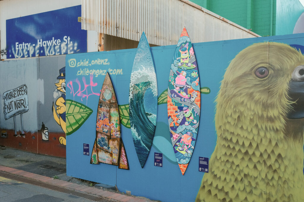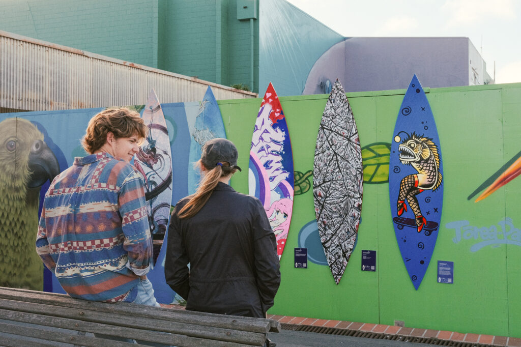 We’re trying to reflect what New Brighton has been and will be in the future. So, I think the inclusion of graffiti writers and street artists and linking them with exhibition opportunities is really important. It creates a sense of connection because that is what the festival is all about, connecting people. Duke Kahanamoku, he brought surfing here, but, like, you can definitely see that skateboarding has come from surfing, and then skateboarding has a really big link to graffiti and street art and that sort of thing as well. So, I think just linking the art to the sports and knowing where it’s come from and the whakapapa of the whole thing is really important.