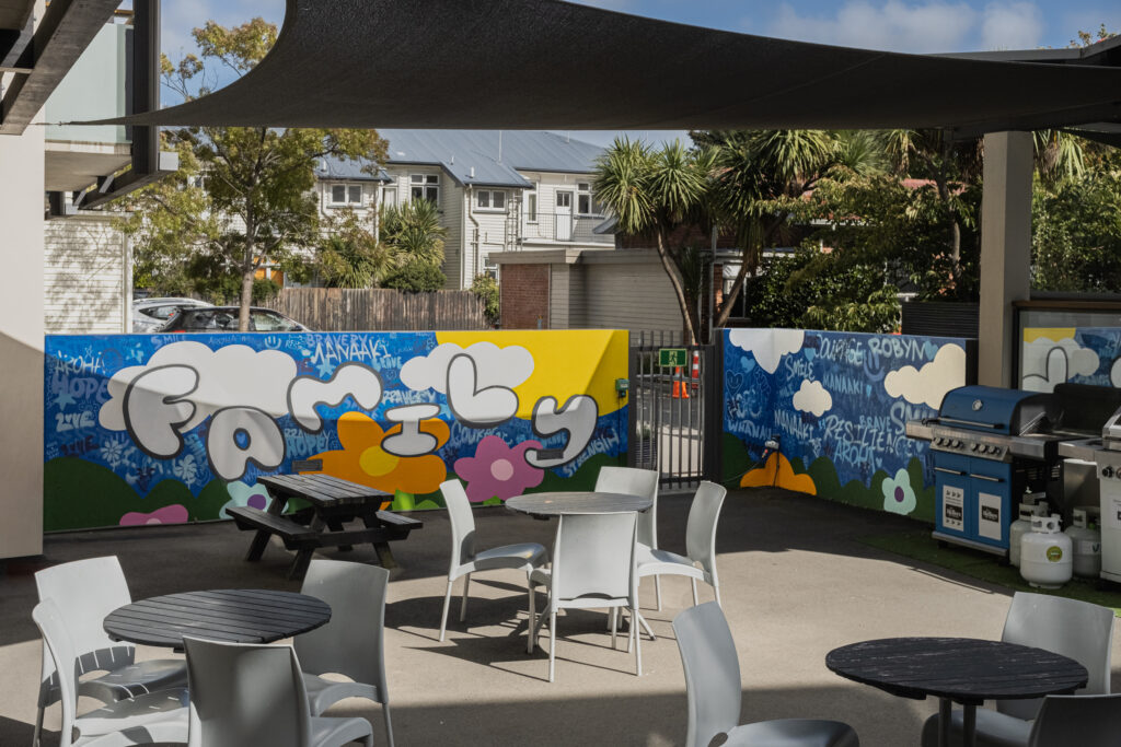 “RMHC NZ supports families through some of their toughest times, and creating spaces where children can feel joy and distraction is so important. Jay’s mural has completely transformed the Christchurch House’s outdoor area; bringing colour, imagination and a sense of play into what was once a blank wall. The impact it’s had on the space (and the kids who use it) has been wonderful to see.”